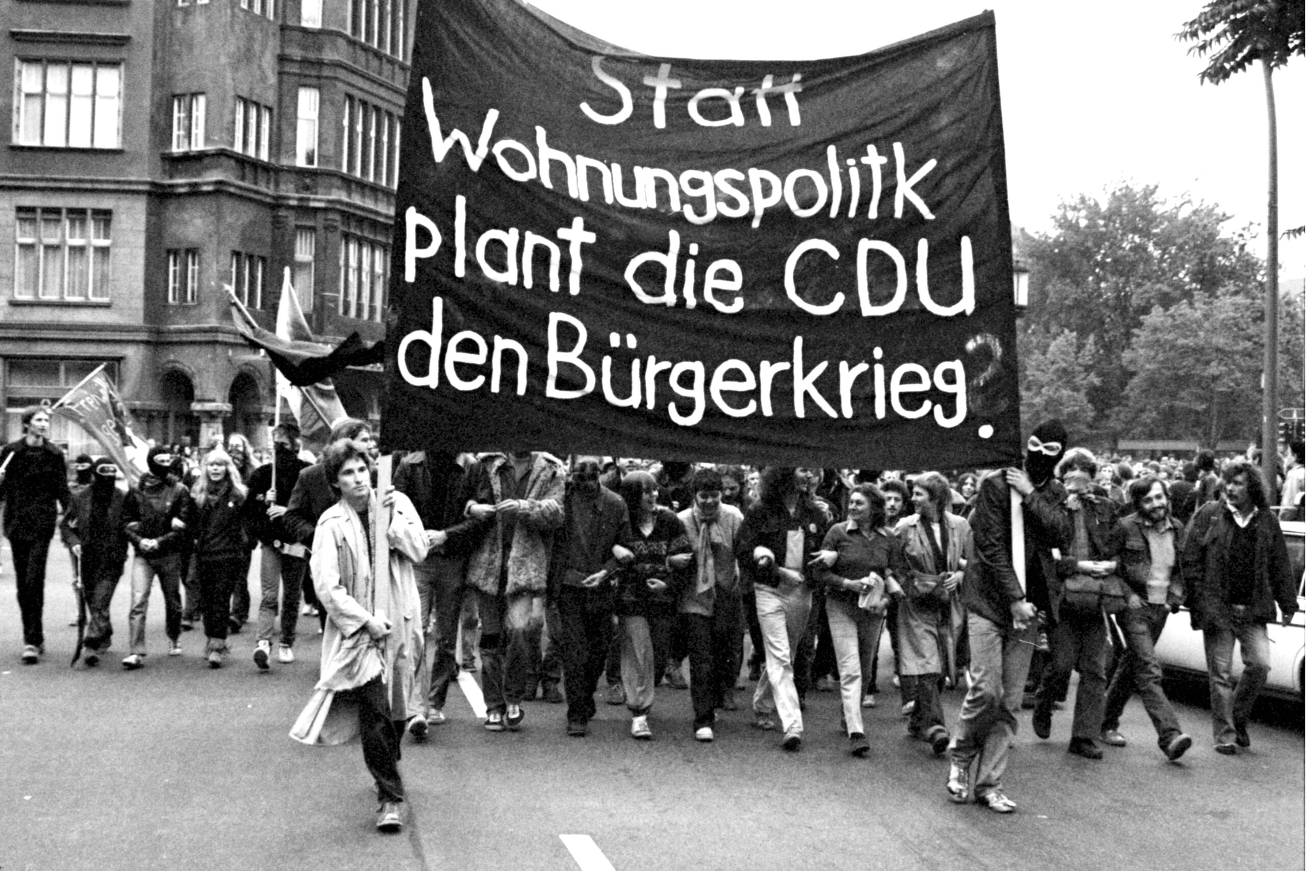 Im Dezember 1980 erschütterten heftige Straßenschlachten West-Berlin. Grund war die Bau und Wohnungspolitik. Tausende Mietshäuser standen leer und verrotteten, während große Wohnungsnot herrschte. Das war so gewollt, weil die Politik auf Abriss und Neubau setzte. Doch dagegen wurden immer mehr Häuser besetzt, in kurzer Zeit waren es über 160. Immer wieder kam es zu heftigen Auseinandersetzungen, wenn die Polizei gegen die Besetzer vorging. Darüber stürzte der SPD-Senat, es gab Neuwahlen, und der neue CDU-geführte Senat setzte schließlich auf gewaltsame Räumungen. Im September 1981 starb dabei der 18-jährige Klaus-Jürgen Rattay. Es folgten langwierige Verhandlungen. Schließlich wurden rund 80 Häuser legalisiert.