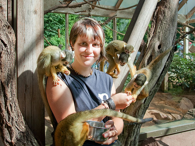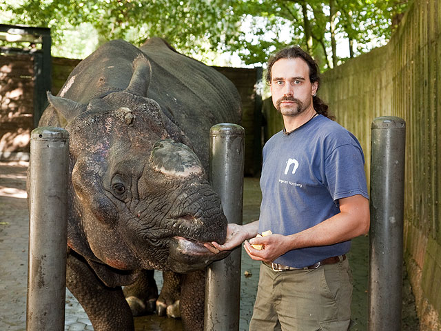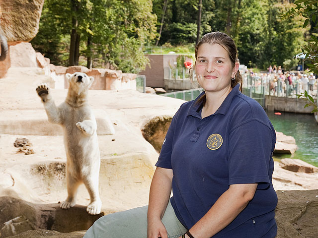 Endlich hat Flocke einen adäquaten Spielgefährten: Rasputin heißt der fast gleichaltrige Eisbär, der aus Moskau nach Nürnberg gekommen ist. Der neue Freund soll der Handaufzucht auch den Abschied von ihren menschlichen Ersatzeltern erleichtern. Denn mittlerweile ist Flocke so kräftig geworden, dass Petra Fritz, Steffi Krüger und Kollegen den direkten Kontakt besser meiden. Ein Wiedersehen gibt es mit den großen Raubkatzen. Weil ihr Haus umgebaut werden musste, waren die beiden Löwen Keera und Thar sowie das Tigerpaar für fast zwei Jahre in anderen Zoos untergebracht. Und Sigena und Jantar haben ihrem Pfleger Horst „Mausi“ Maussner ein ganz besonderes Geschenk mitgebracht: Kaum zurück in Nürnberg hat das Tigerweibchen vier gesunde Babys zur Welt gebracht… Auch bei einer anderen äußerst bedrohten Art freut sich der Tiergarten über einen Zuchterfolg: Nach einer Tragzeit von 16 Monaten hat Panzernashorn Purana ein gesundes Mädchen zur Welt gebracht. René Kaiser und Oliver Pürkel haben nicht nur deswegen alle Hände voll zu tun. Zu allem Überfluss hat sich Ropen, der stolze Vater, auch noch am Fuß verletzt. Bei den Totenkopfaffen dagegen verläuft die Aufzucht des Jungtiers ohne Probleme. Noch kann Franziska Seifert (Foto) nicht sicher sagen, welches Geschlecht das Baby hat. Aber bei so viel liebevoller Pflege ist es wohl nur noch eine Frage der Zeit, bis sie auch zu dem allerkleinsten Totenkopfäffchen Tuchfühlung aufnehmen kann…